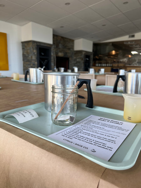 Your ticket includes the candle making workshop and a glass of Poplar Grove Pinot Gris.